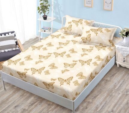 Prețul inițial a fost: 59,00 lei.49,00 leiPrețul curent este: 49,00 lei.Husă de pat cu Elastic, Bumbac Satinat, 2 Fețe de Pernă, 180×200 cm, Crem, Fluturi