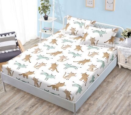 Prețul inițial a fost: 59,00 lei.49,00 leiPrețul curent este: 49,00 lei.Husă de pat cu Elastic, Bumbac Satinat, 2 Fețe de Pernă, 180×200 cm, Alb, Pisicuțe