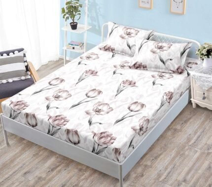 Prețul inițial a fost: 59,00 lei.49,00 leiPrețul curent este: 49,00 lei.Husă de pat cu Elastic, Bumbac Satinat, 2 Fețe de Pernă, 180×200 cm, Bej, Lalele