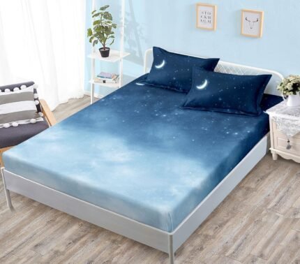 Prețul inițial a fost: 59,00 lei.49,00 leiPrețul curent este: 49,00 lei.Husă de pat cu Elastic, Bumbac Satinat, 2 Fețe de Pernă, 180×200 cm, Albastru Degrade, Stele