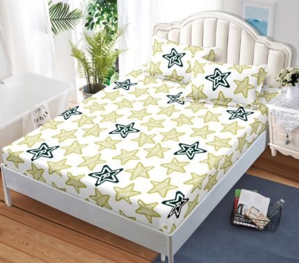 Prețul inițial a fost: 59,00 lei.49,00 leiPrețul curent este: 49,00 lei.Husă de pat cu Elastic, Bumbac Satinat, 2 Fețe de Pernă, 180×200 cm, Crem, Stele