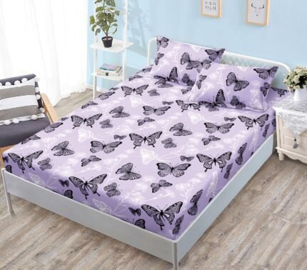 Prețul inițial a fost: 59,00 lei.49,00 leiPrețul curent este: 49,00 lei.Husă de pat cu Elastic, Bumbac Satinat, 2 Fețe de Pernă, 180×200 cm, Mov, Fluturi