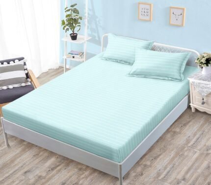 Husă de pat cu Elastic, Bumbac Satinat, 2 Fețe de Pernă, 180×200 cm, Dungi