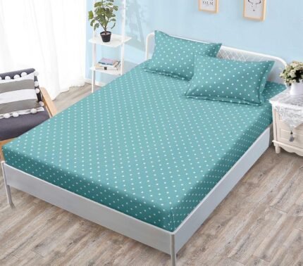 Prețul inițial a fost: 59,00 lei.49,00 leiPrețul curent este: 49,00 lei.Husă de pat cu Elastic, Bumbac Satinat, 2 Fețe de Pernă, 180×200 cm, Verde, Buline