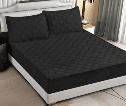 Prețul inițial a fost: 169,00 lei.109,00 leiPrețul curent este: 109,00 lei.Husă de pat tip TOPPER cu Elastic, Matlasată, 2 Fețe de Pernă, 180×200 cm, Negru
