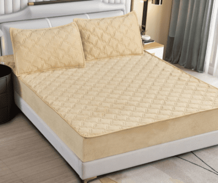 Prețul inițial a fost: 169,00 lei.109,00 leiPrețul curent este: 109,00 lei.Husă de pat tip TOPPER cu Elastic, Matlasată, 2 Fețe de Pernă, 160×200 cm, Bej