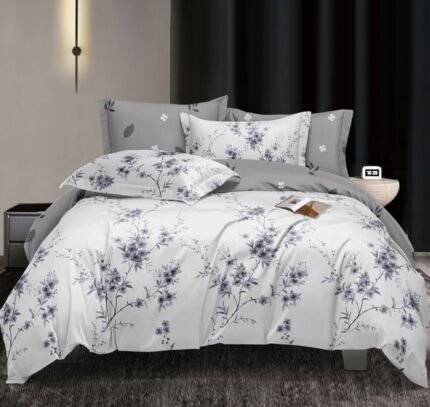 Prețul inițial a fost: 109,00 lei.85,00 leiPrețul curent este: 85,00 lei.Lenjerie Bumbac Satinat, 4 Piese, cu 2 fețe, Pat Dublu, Alb, Gri, Flori