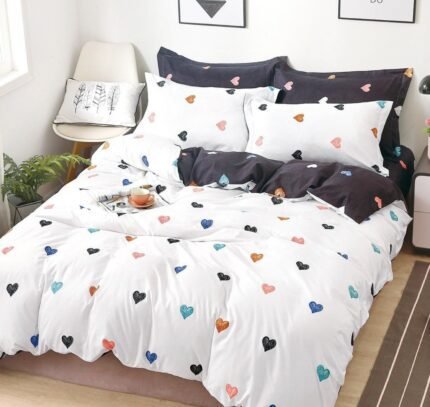 Prețul inițial a fost: 109,00 lei.85,00 leiPrețul curent este: 85,00 lei.Lenjerie Bumbac Satinat, 4 Piese, cu 2 fețe, Pat Dublu, Alb, Inimi în Culori