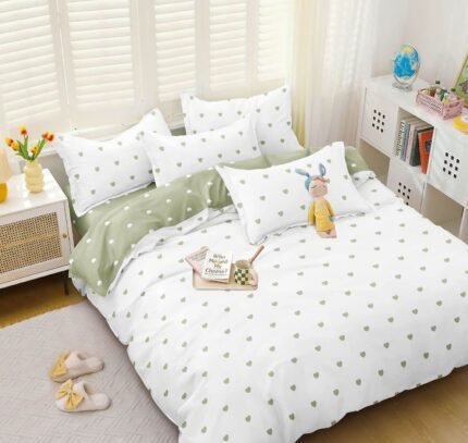 Prețul inițial a fost: 109,00 lei.85,00 leiPrețul curent este: 85,00 lei.Lenjerie Bumbac Satinat, 4 Piese, cu 2 fețe, Pat Dublu, Alb, Inimi Verzi