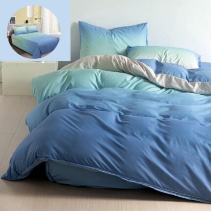 Prețul inițial a fost: 119,00 lei.89,00 leiPrețul curent este: 89,00 lei.Lenjerie Bumbac Finet, Cearceaf Clasic, 4 Piese, Pat 1 Persoană, Degrade, Bleu