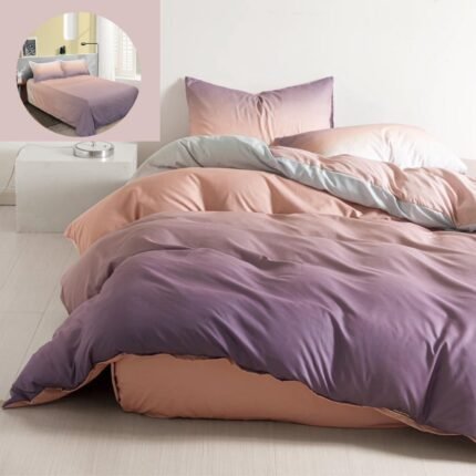 Prețul inițial a fost: 119,00 lei.89,00 leiPrețul curent este: 89,00 lei.Lenjerie Bumbac Finet, Cearceaf Clasic, 4 Piese, Pat 1 Persoană, Degrade, Lila