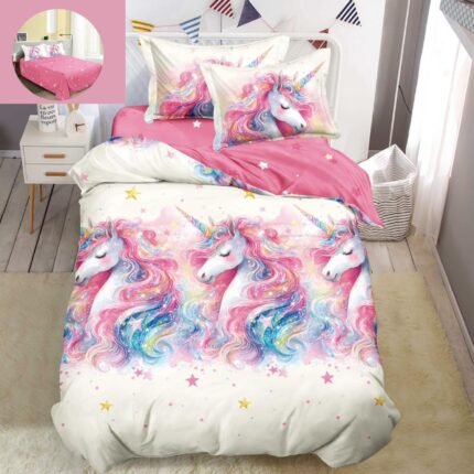 Prețul inițial a fost: 119,00 lei.89,00 leiPrețul curent este: 89,00 lei.Lenjerie Bumbac Finet, Cearceaf Clasic, 4 Piese, Pat 1 Persoană, Roz, Unicorni