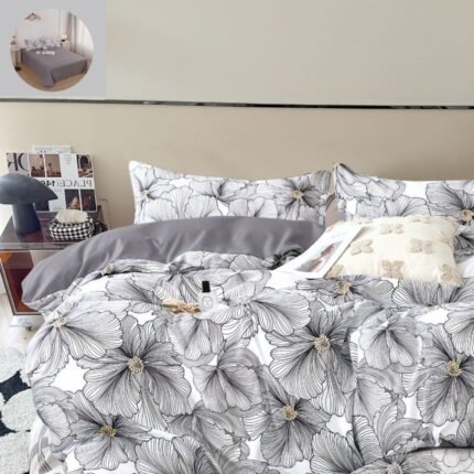 Prețul inițial a fost: 119,00 lei.89,00 leiPrețul curent este: 89,00 lei.Lenjerie Bumbac Finet, Cearceaf Clasic, 4 Piese, Pat 1 Persoană, Gri, Flori