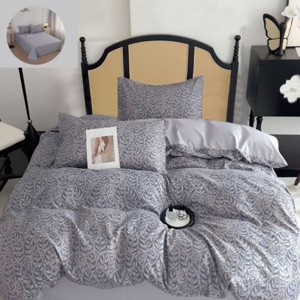 Prețul inițial a fost: 119,00 lei.89,00 leiPrețul curent este: 89,00 lei.Lenjerie Bumbac Finet, Cearceaf Clasic, 4 Piese, Pat 1 Persoană, Gri, Frunze