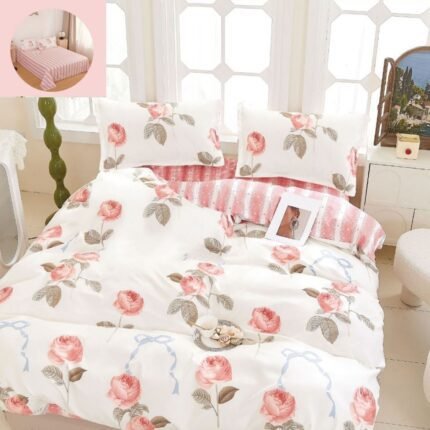 Prețul inițial a fost: 119,00 lei.89,00 leiPrețul curent este: 89,00 lei.Lenjerie Bumbac Finet, Cearceaf Clasic, 4 Piese, Pat 1 Persoană, Roz, Trandafiri