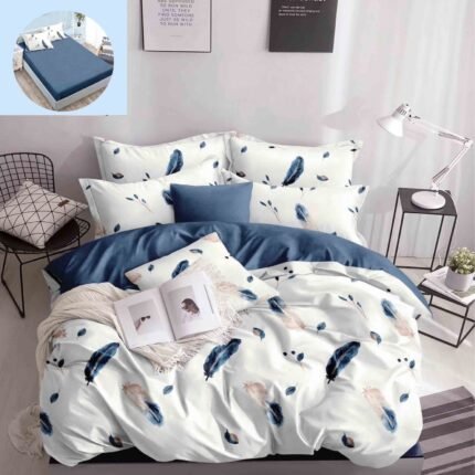 Prețul inițial a fost: 119,00 lei.89,00 leiPrețul curent este: 89,00 lei.Lenjerie Bumbac Satinat, cu Elastic, 4 Piese, Pat 1 Persoană, Blue Feathers