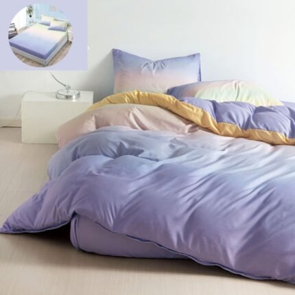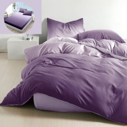 Prețul inițial a fost: 119,00 lei.89,00 leiPrețul curent este: 89,00 lei.Lenjerie Bumbac Satinat, cu Elastic, 4 Piese, Pat 1 Persoană, Degrade, Lila