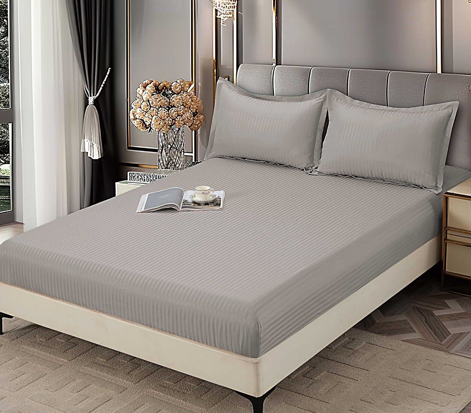 Cearceaf cu Elastic 180x200cm, Damasc Finetat, 2 fețe de pernă, 50×70 cm, Gri Deschis