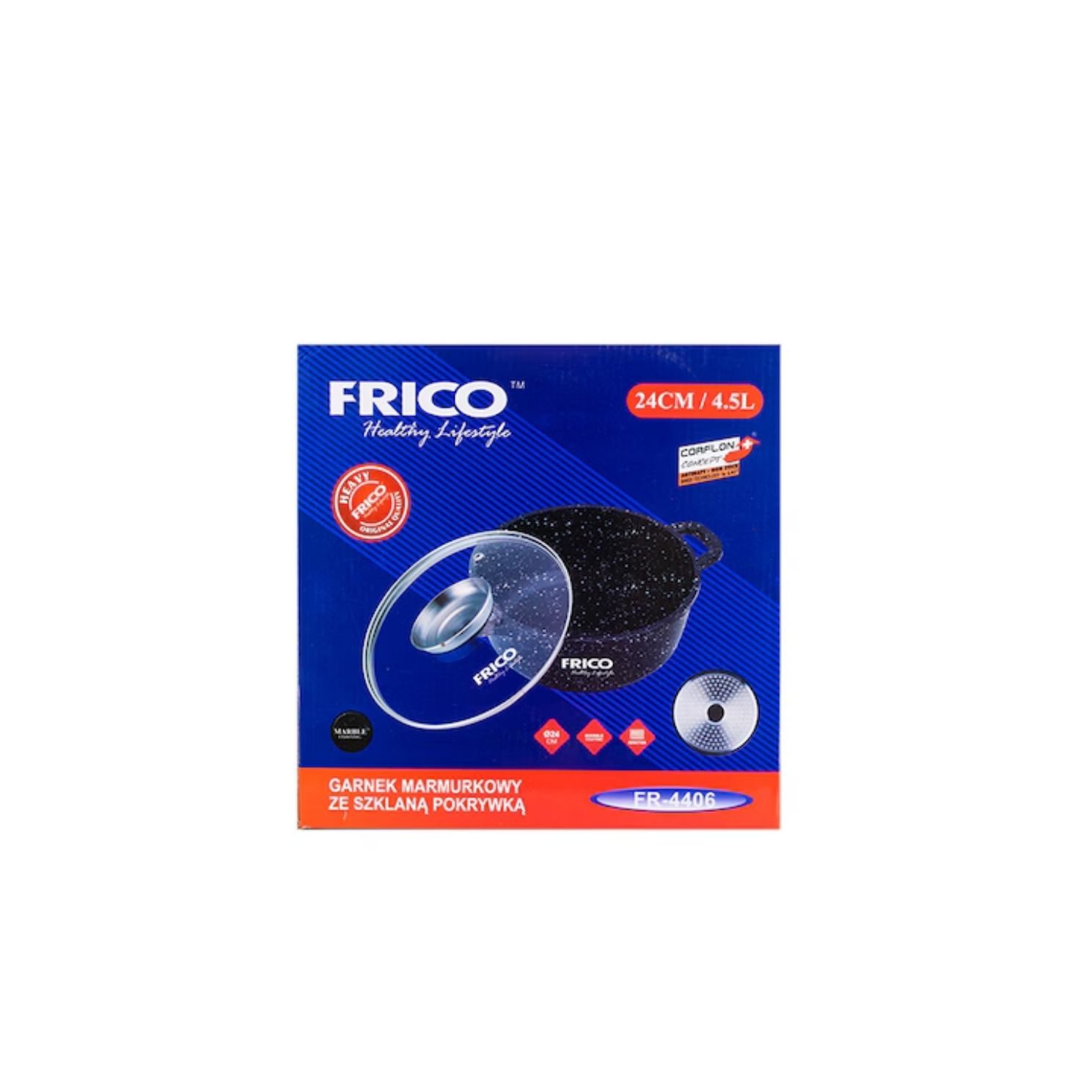 Oală din Aluminiu, 24 cm, Capac din Sticlă, Interior Marmurat, Capacitate 4.4 L, Colecția Frico