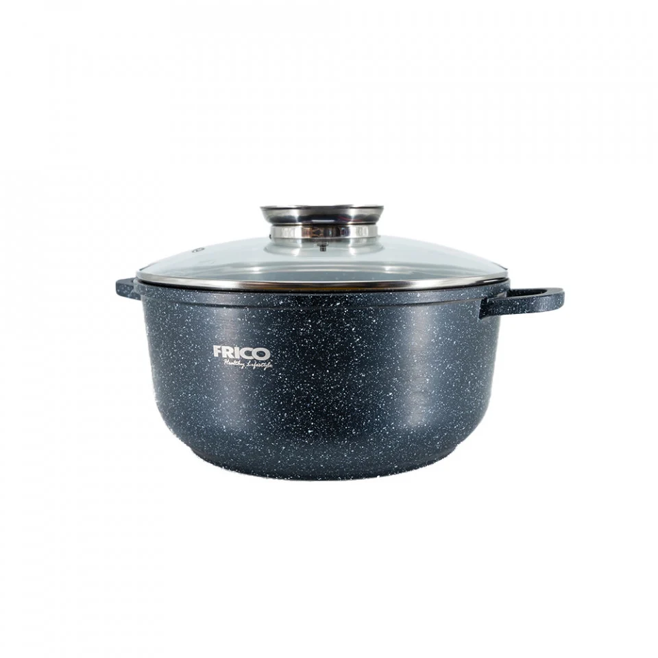 Oală din Aluminiu, 24 cm, Capac din Sticlă, Interior Marmurat, Capacitate 4.4 L, Colecția Frico