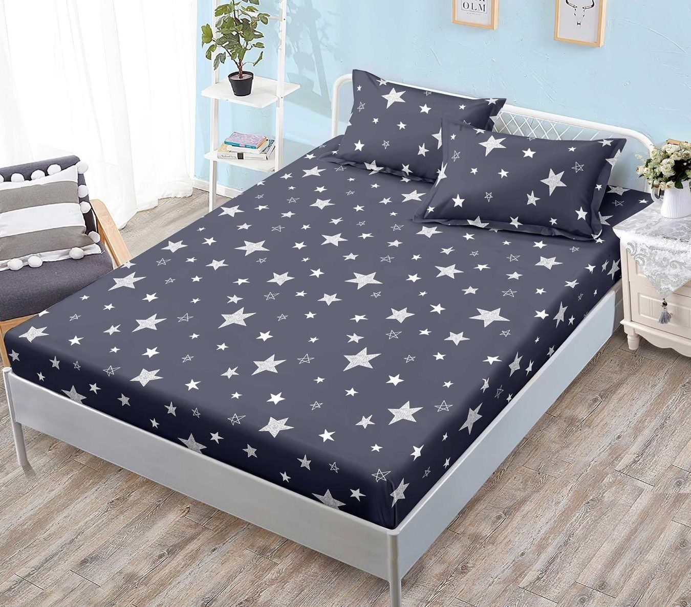Husă de pat cu Elastic, Bumbac Satinat, 2 Fețe de Pernă, 180×200 cm, Gri, Stele