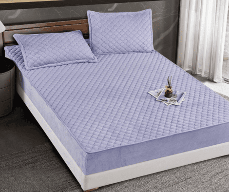 Husă de pat tip TOPPER cu Elastic, Matlasată, 2 FeÈ›e de Pernă, 160×200 cm, Lila