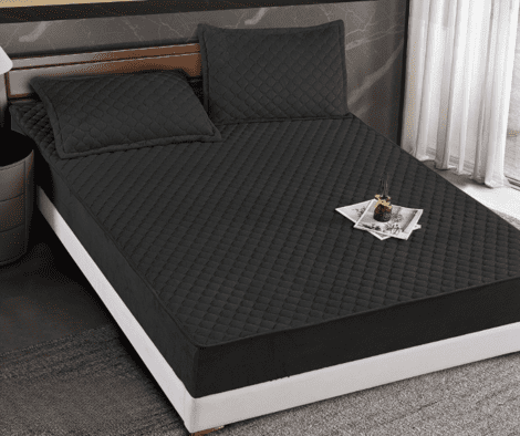 Husă de pat tip TOPPER cu Elastic, Matlasată, 2 FeÈ›e de Pernă, 160×200 cm, Negru