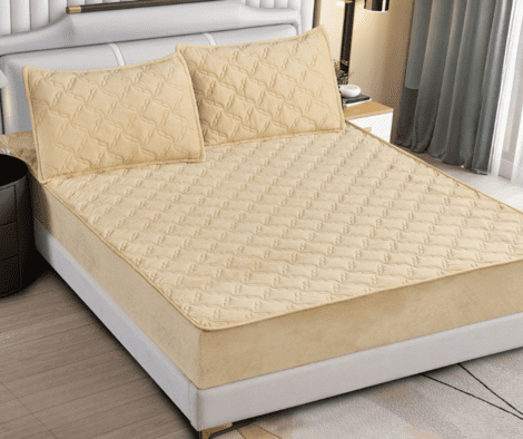 Husă de pat tip TOPPER cu Elastic, Matlasată, 2 FeÈ›e de Pernă, 180×200 cm, Bej