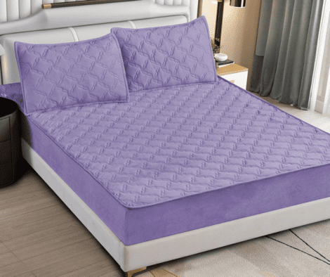 Husă de pat tip TOPPER cu Elastic, Matlasată, 2 FeÈ›e de Pernă, 180×200 cm, Mov