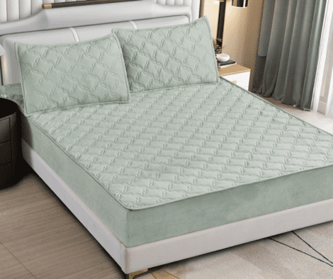 Husă de pat tip TOPPER cu Elastic, Matlasată, 2 FeÈ›e de Pernă, 180×200 cm, Verde Salvie
