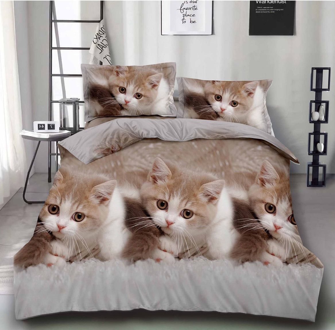 Lenjerie 3D, Bumbac Satinat 4 piese, Pat Dublu, Pisicuțe