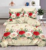 Lenjerie 3D, Bumbac Satinat 4 piese, Pat Dublu, Flori Colorate