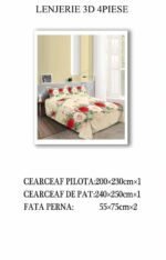 - Design tridimensional: Lenjeriile 3D sunt create cu tehnologie avansată pentru a oferi iluzii optice tridimensionale. Ele pot prezenta modele realiste, precum flori, peisaje sau personaje.
