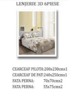 Lenjerie 3D, Bumbac Satinat, 6 piese, Pat Dublu
