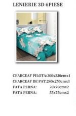 Lenjerie 3D, Bumbac Satinat, 6 piese, Pat Dublu