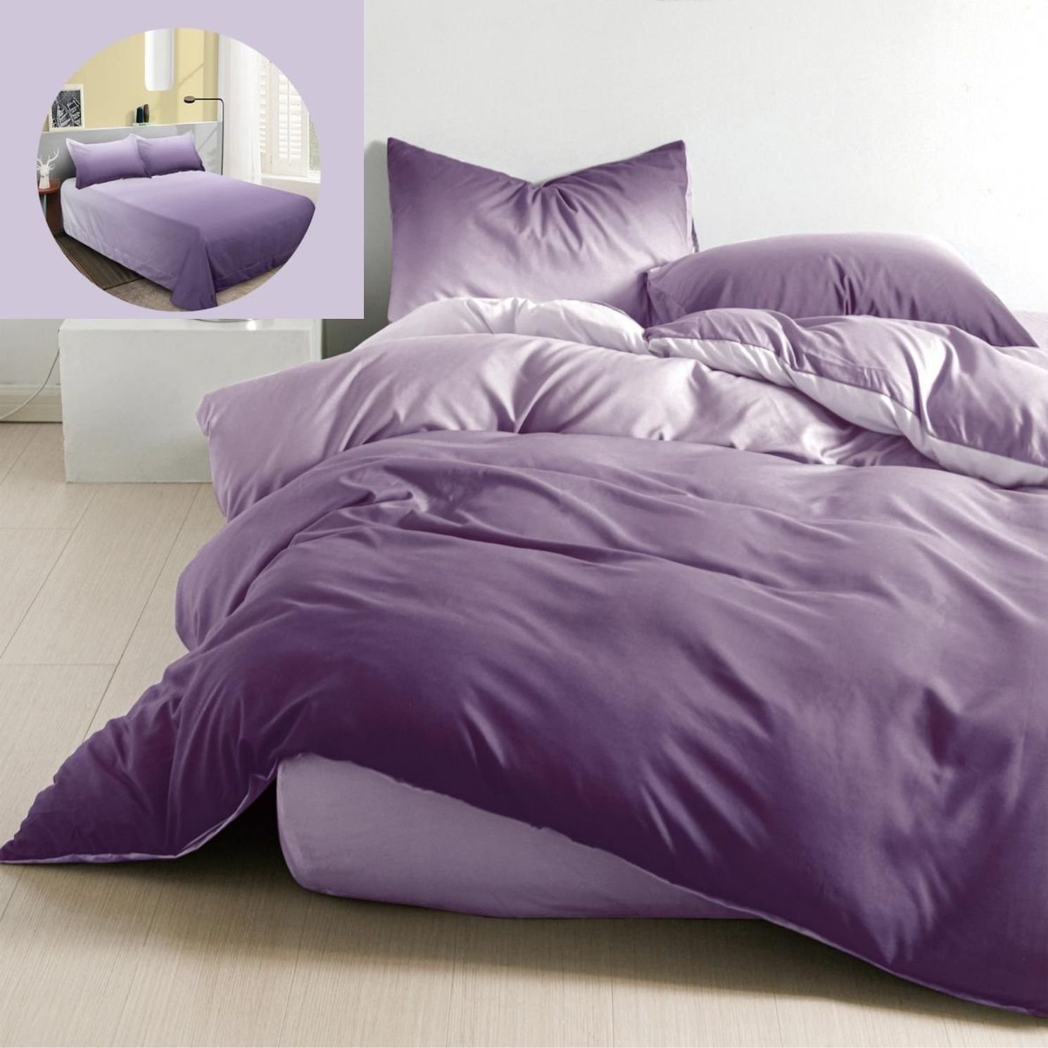 Lenjerie Bumbac Finet, Cearceaf Clasic, 4 Piese, Pat 1 Persoană, Degrade, Mov
