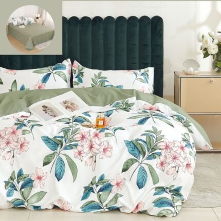 Set Lenjerie cu 4 piese confecționată din Bumbac Finet pentru pat de o persoană și 2 fețe de pernă.