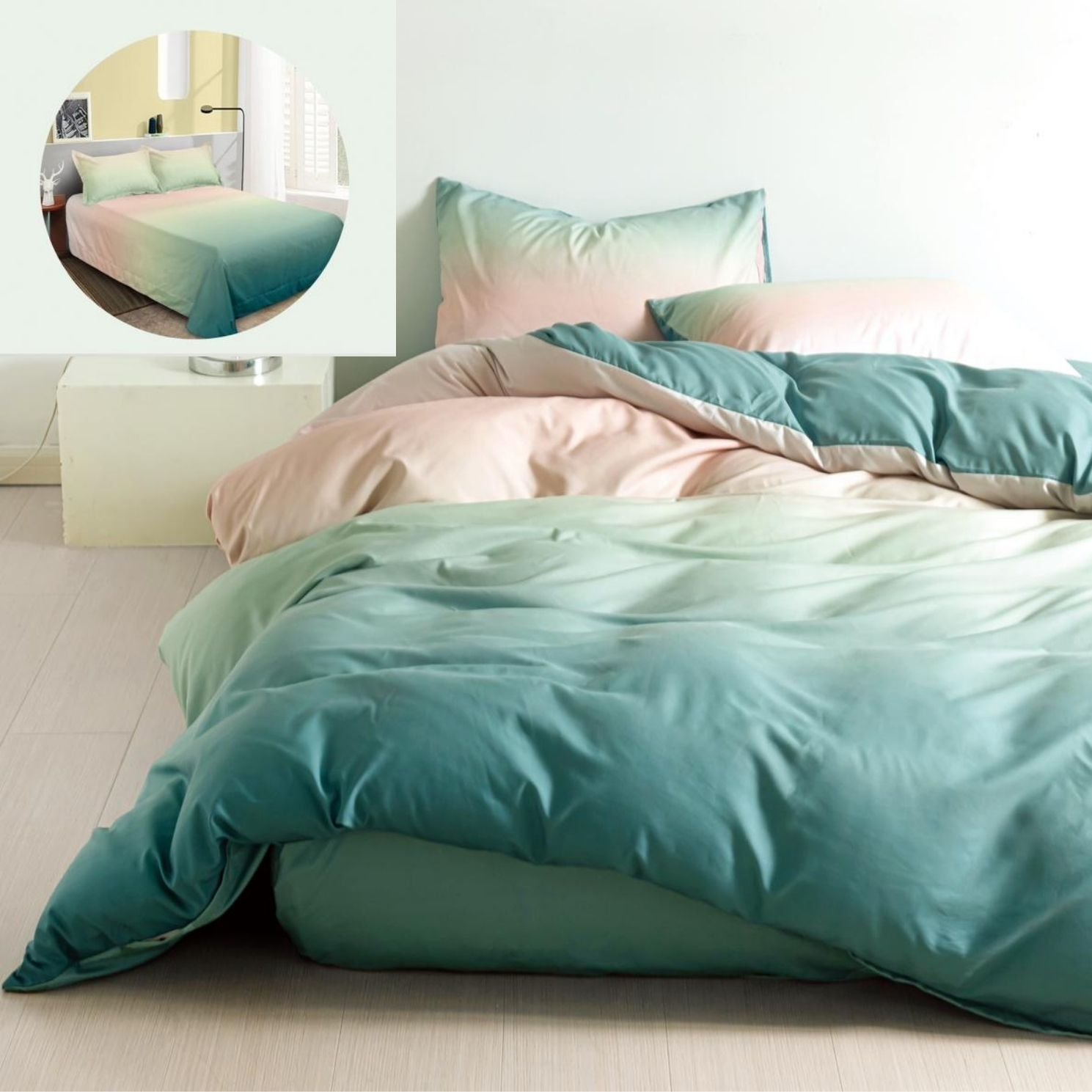 Lenjerie Bumbac Finet, Cearceaf Clasic, 4 Piese, Pat 1 Persoană, Degrade, Verde