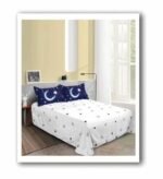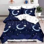 Lenjerie Bumbac Finet, Cearceaf Clasic, 6 Piese, Pat Dublu, Alb-Albastru, Lună, Stele