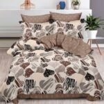 Lenjerie Bumbac Finet, Cearceaf Clasic, 6 Piese, Pat Dublu, Bej, Maro, Inimioare Imperfecte