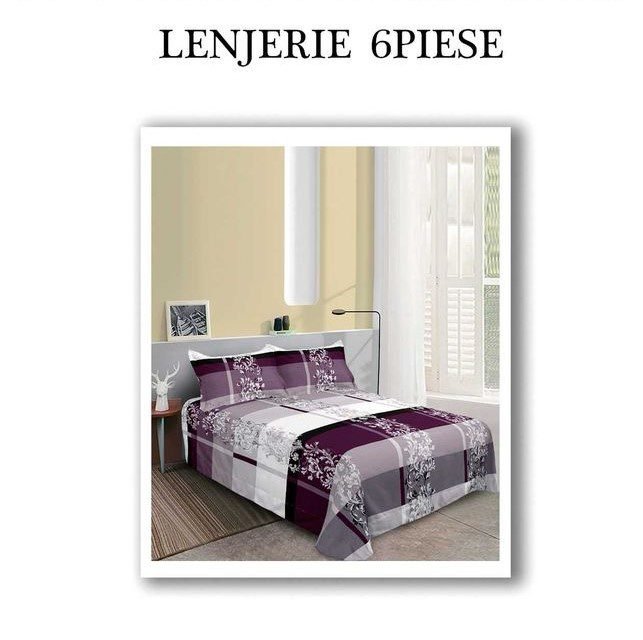 Set Lenjerie cu 6 piese confecționată din Bumbac Finet pentru pat dublu și 4 fețe de pernă.