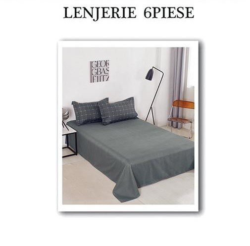 Set Lenjerie cu 6 piese confecționată din Bumbac Finet pentru pat dublu și 4 fețe de pernă.