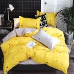 Lenjerie Bumbac Finet, Cearceaf Clasic, 6 Piese, Pat Dublu, Clasic, Galben, Gene, Steluțe