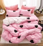 Lenjerie Bumbac Finet, Cearceaf Clasic, 6 Piese, Pat Dublu, Clasic, Roz, Inimioare