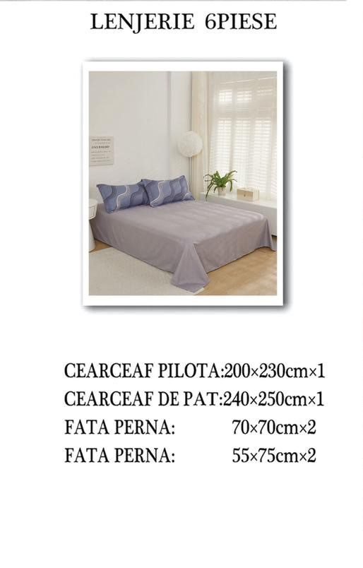 Set Lenjerie cu 6 piese confecționată din Bumbac Finet pentru pat dublu și 4 fețe de pernă.