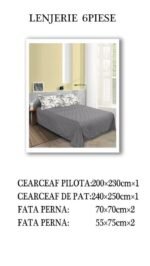 Set Lenjerie cu 6 piese confecționată din Bumbac Finet pentru pat dublu și 4 fețe de pernă.