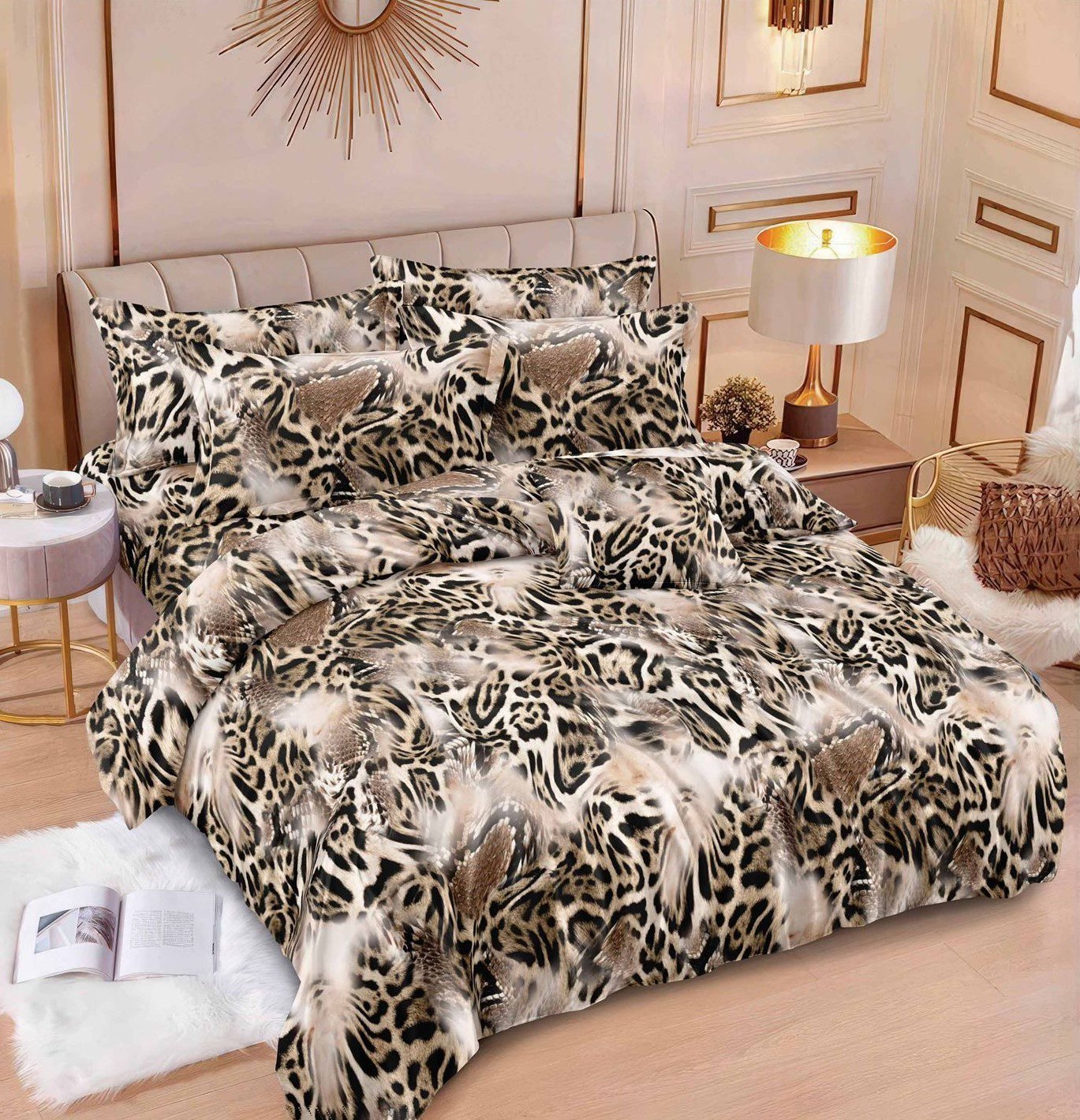 Lenjerie Bumbac Finet, Cearceaf Clasic, 6 Piese, Pat Dublu, Clasic, Maro, Animal Print