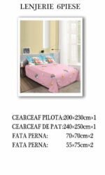 Set Lenjerie cu 6 piese confecționată din Bumbac Finet pentru pat dublu și 4 fețe de pernă.