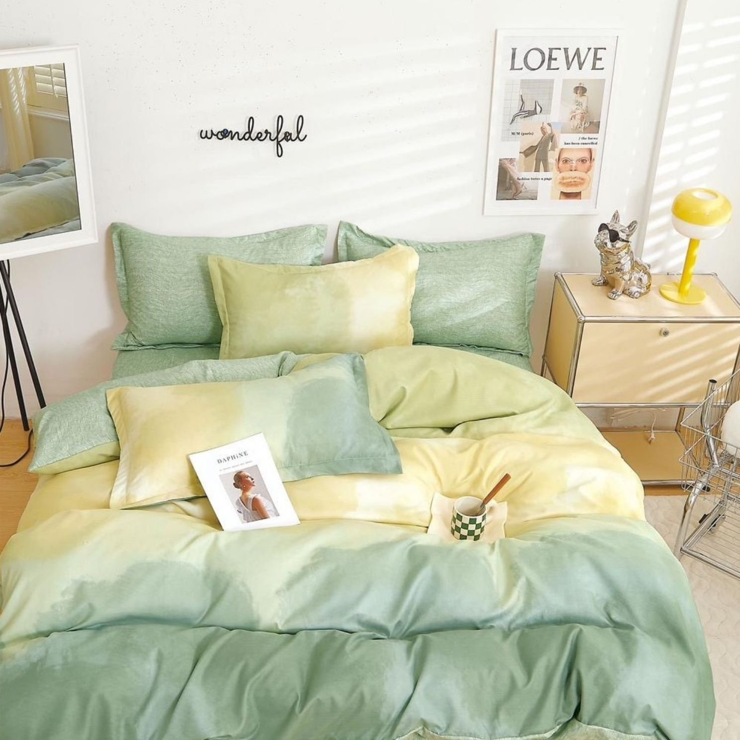 Lenjerie Bumbac Finet, Cearceaf Clasic, 6 Piese, Pat Dublu, Clasic, Galben, Verde, Degrade