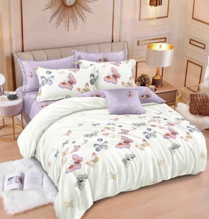 Set Lenjerie cu 6 piese confecționată din Bumbac Finet pentru pat dublu și 4 fețe de pernă.